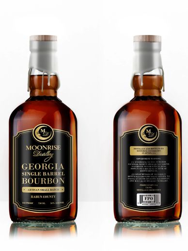 Offered at 112 proof, our Georgia Single Barrel Bourbon Whiskey presents a smooth and complex experience with deep, rich flavors - all made right here in Rabun County Georgia. We use local heirloom corn and traditional trade craft to create a complex four grain bourbon whiskey.